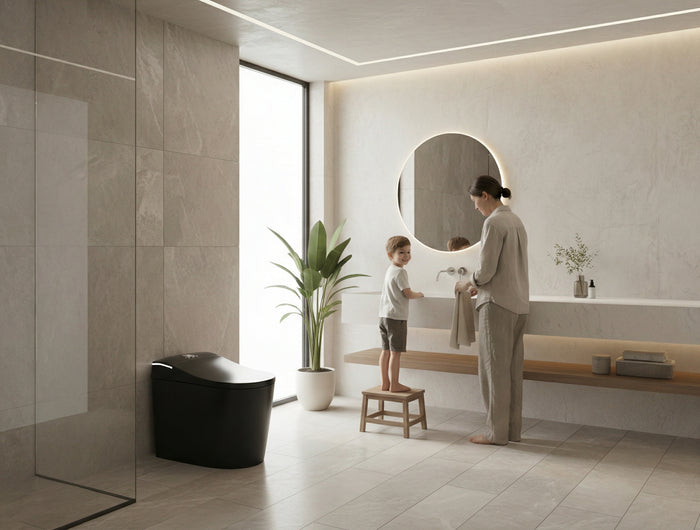 With its built-in flush tank and Japanese bidet tech, this state-of-the-art intelligent toilet delivers Tokyo hotel-quality comfort at home, every day.