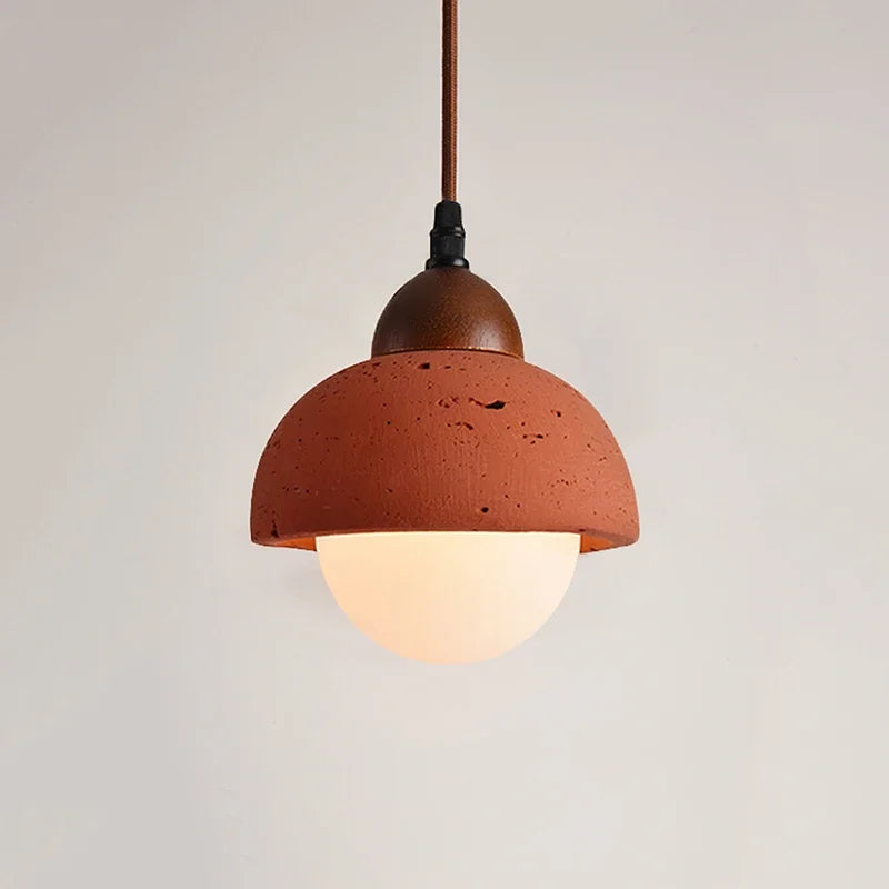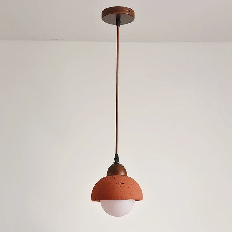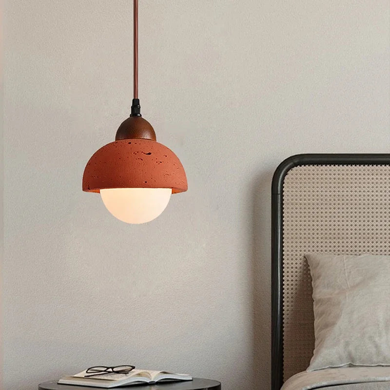 Handcrafted pendant light blending Japanese and Nordic design with natural red stone and glass. Casts a warm, inviting glow that works beautifully in modern or classic spaces. Understated elegance meets functional beauty—the perfect finishing touch for rooms that deserve something special.