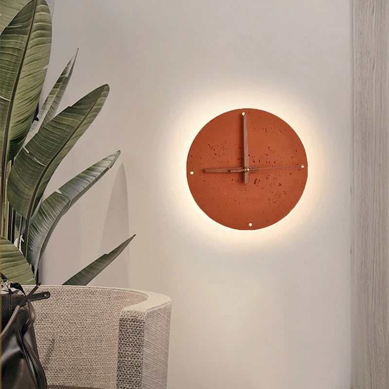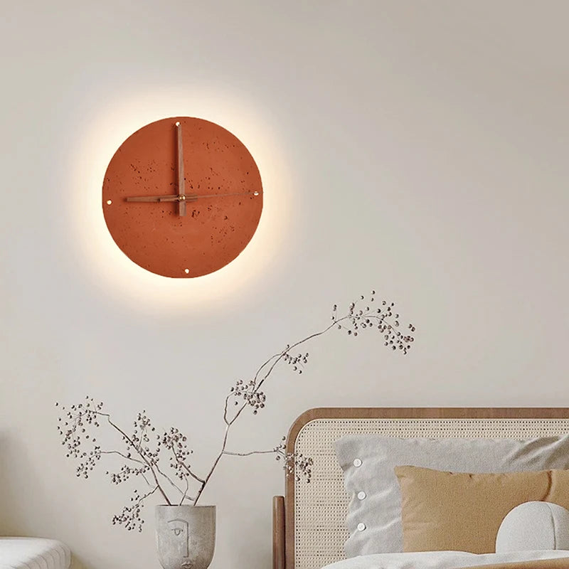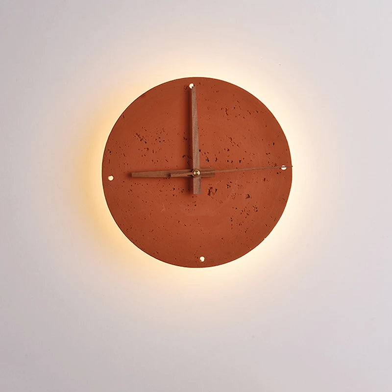 Modern Brick Red Stone LED Wall Lamp Clock ⌀230 mm
