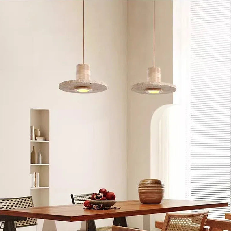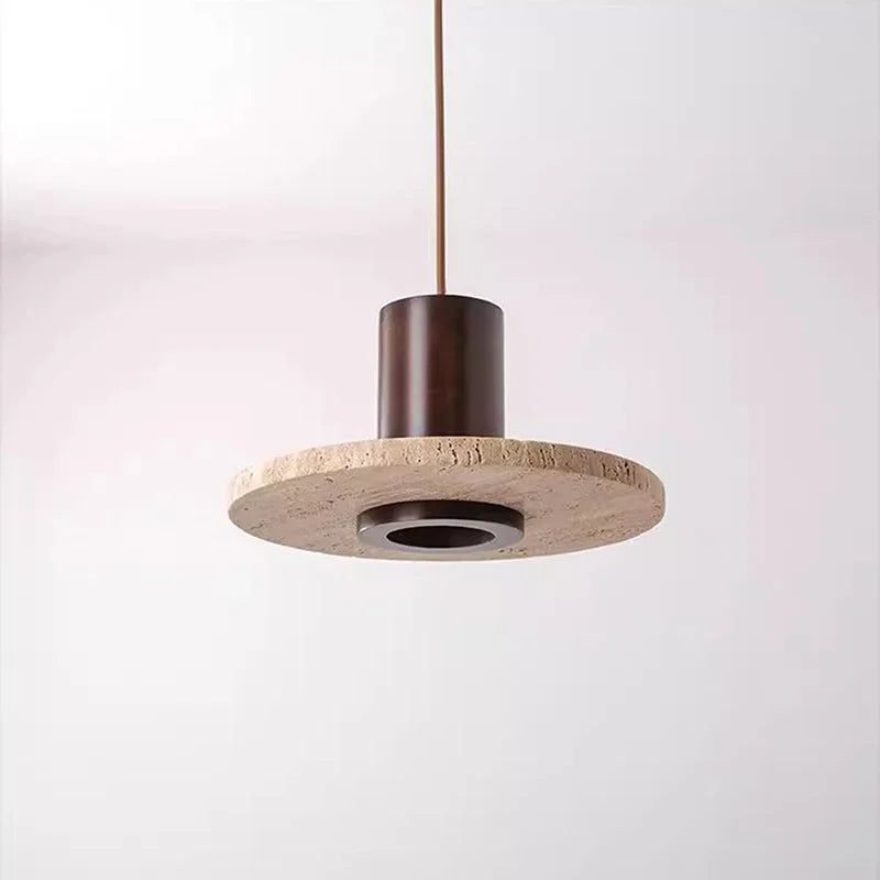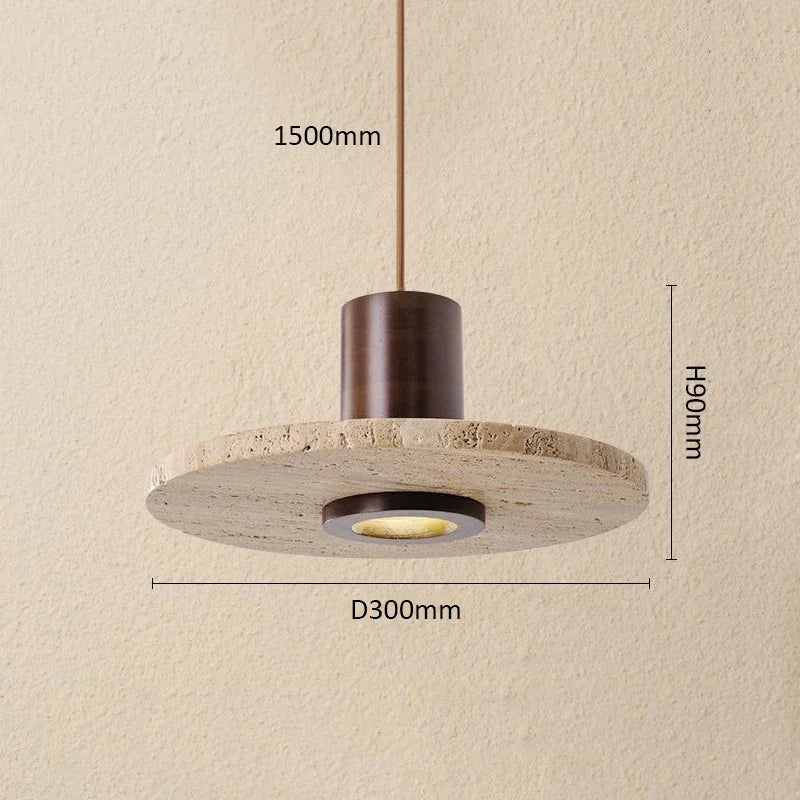 Modern Minimalist Stone and Wood Pendant Light ⌀300×90 mm