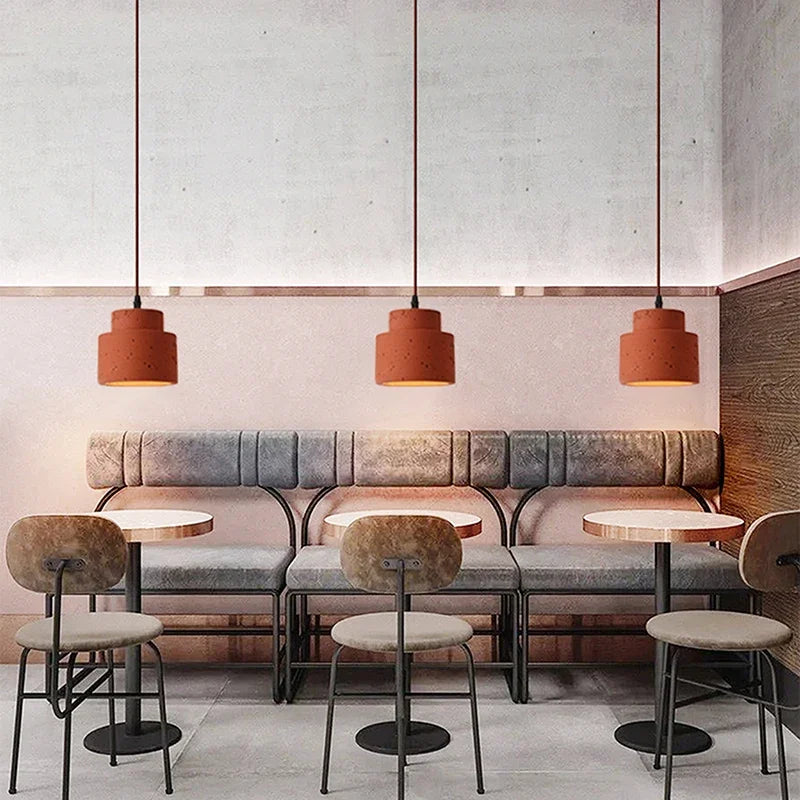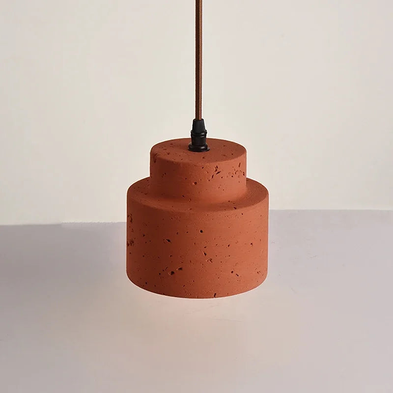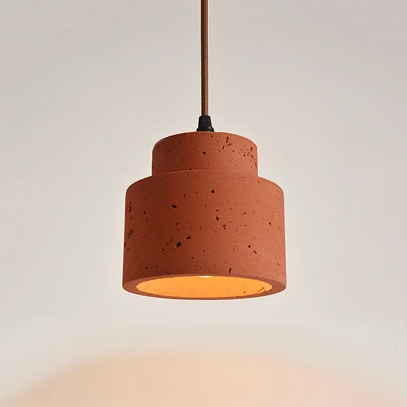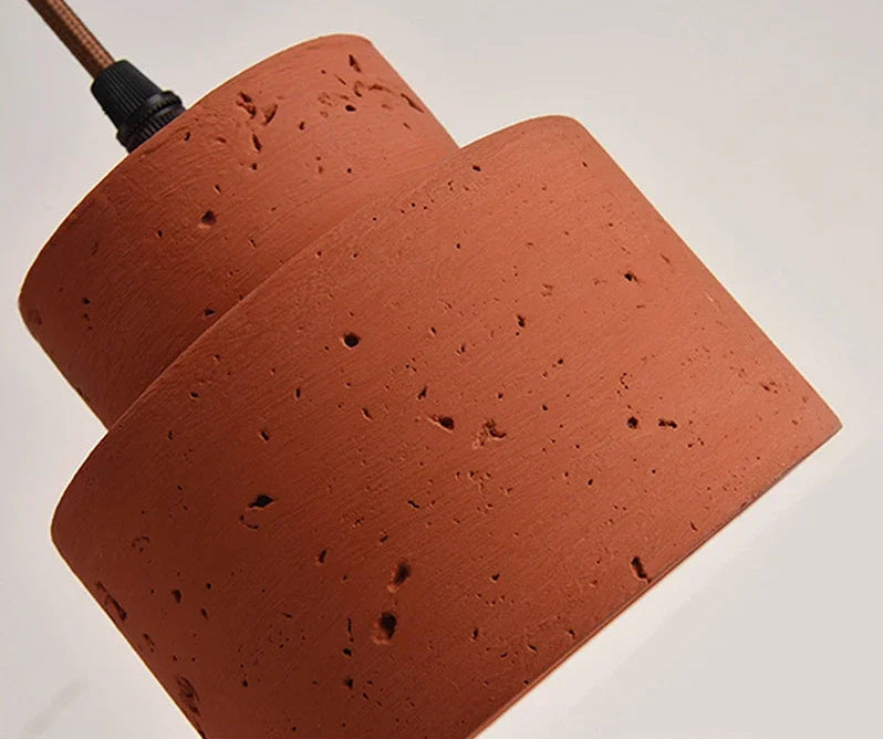 Handcrafted pendant lamp in striking coral red stone—a playful blend of Japanese and Nordic design.