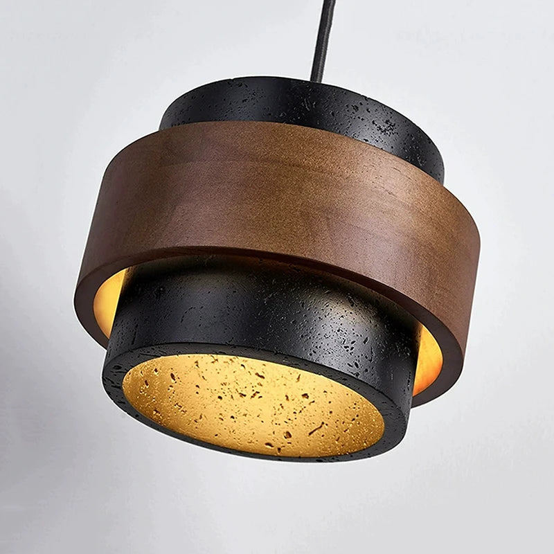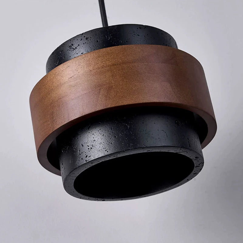 Wabi-Sabi Black Stone & Walnut Pendant Light 170×125 mm – Adjustable Drop Light