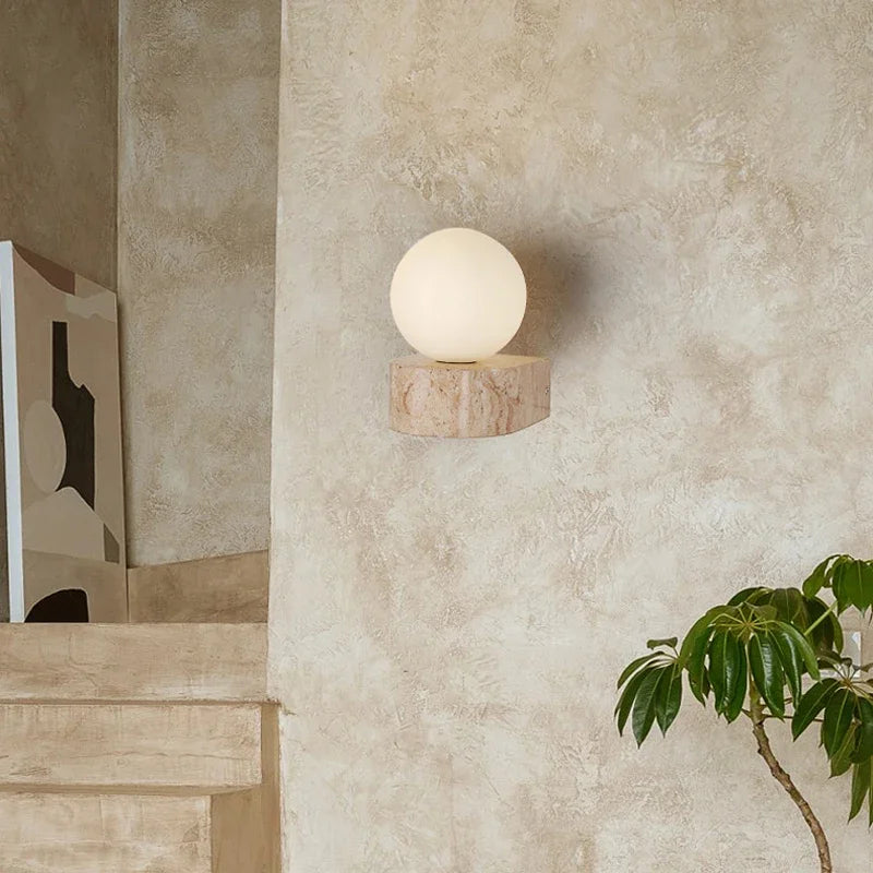 Wabi-Sabi Travertine Stone Wall Lamp ⌀150×H150 mm
